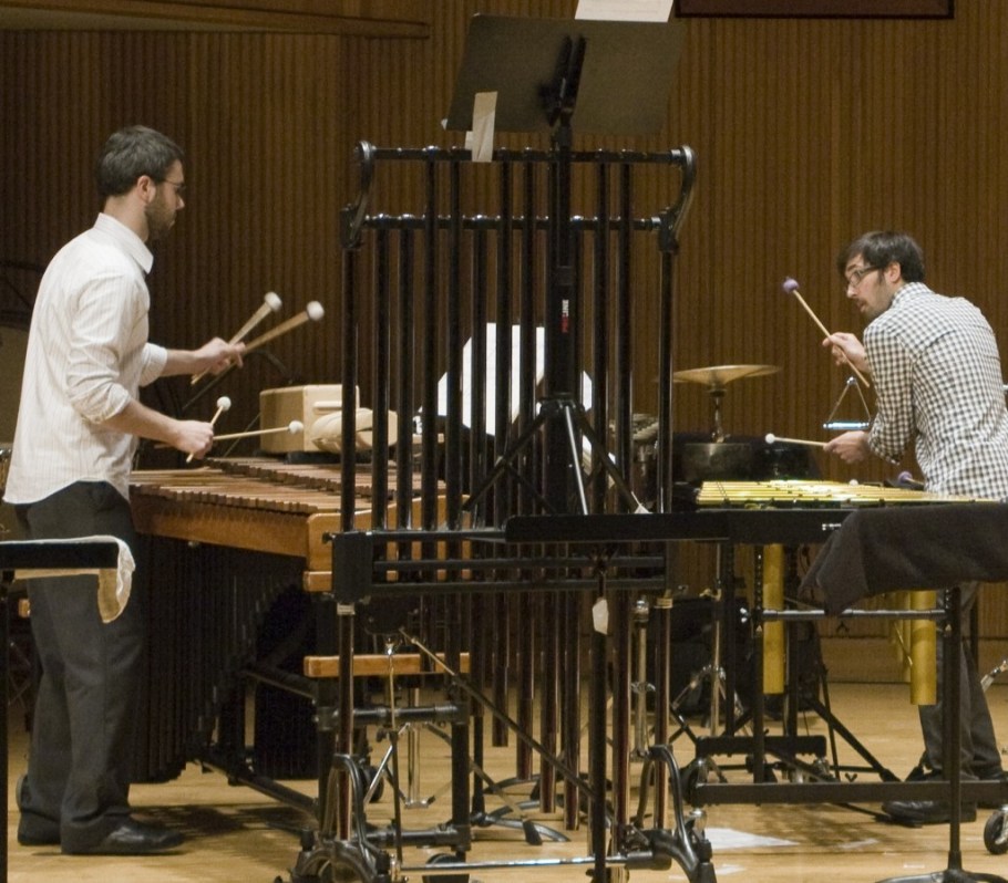 Recorded music by Freeman, Borden and Cain and Crossfire Percussion Duo.