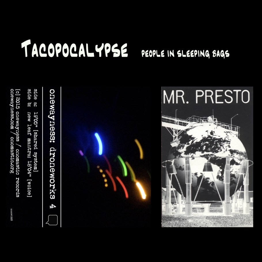 Recorded music by Mr. Presto, strobeflux, onewayness and Tacopocalypse.