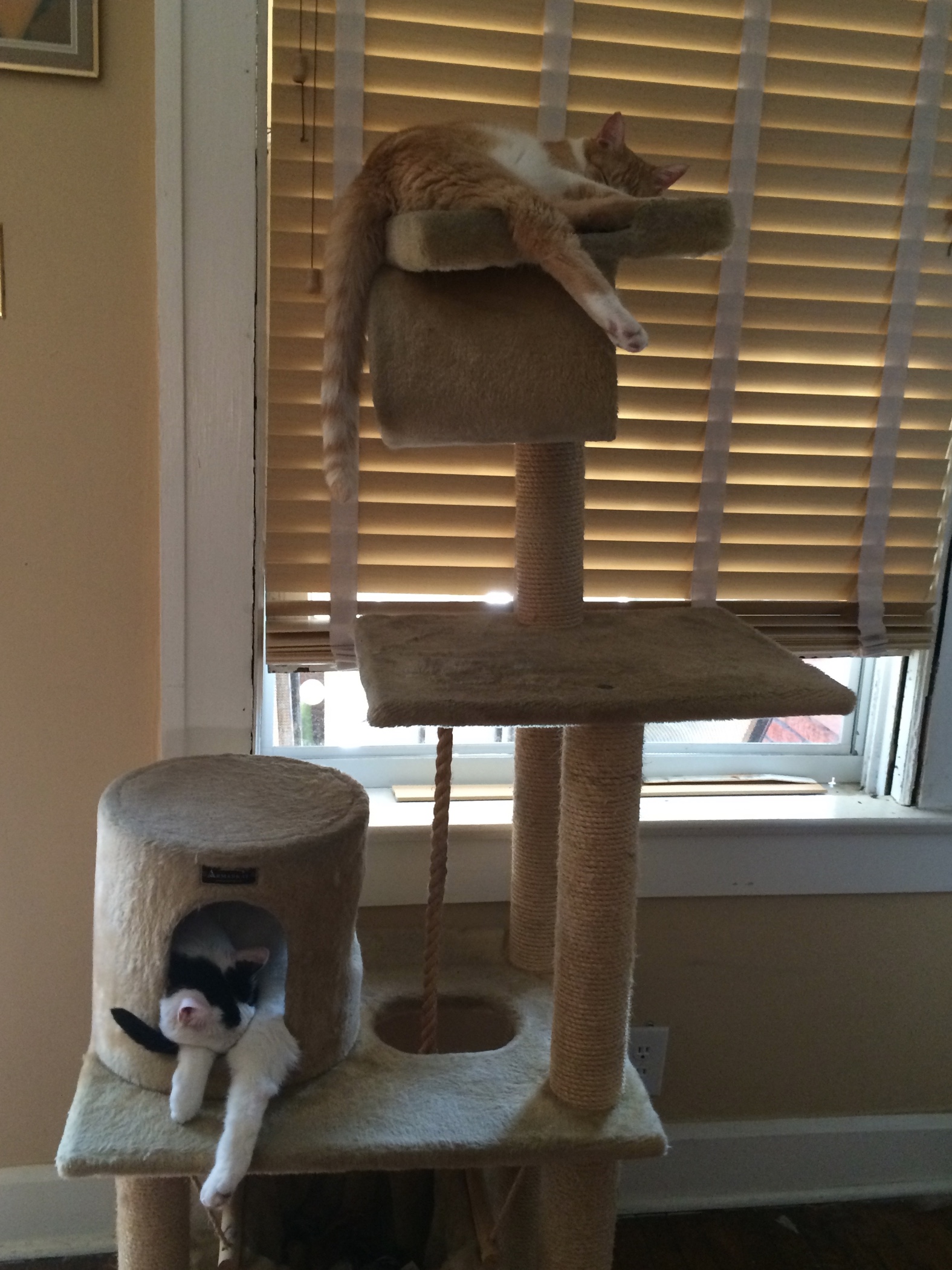 Ugh, this meant distributing my instruments and gear around the house to make room for all the “stuff” that was living in the attic. I set up an interim busy-ness space in Burt’s office and he set up a temporary work are in the living room. So yea, the house in in utter chaos. On the up-side, the cats are absolutely loving all the new stacks, boxes, nooks and crannies to explore.