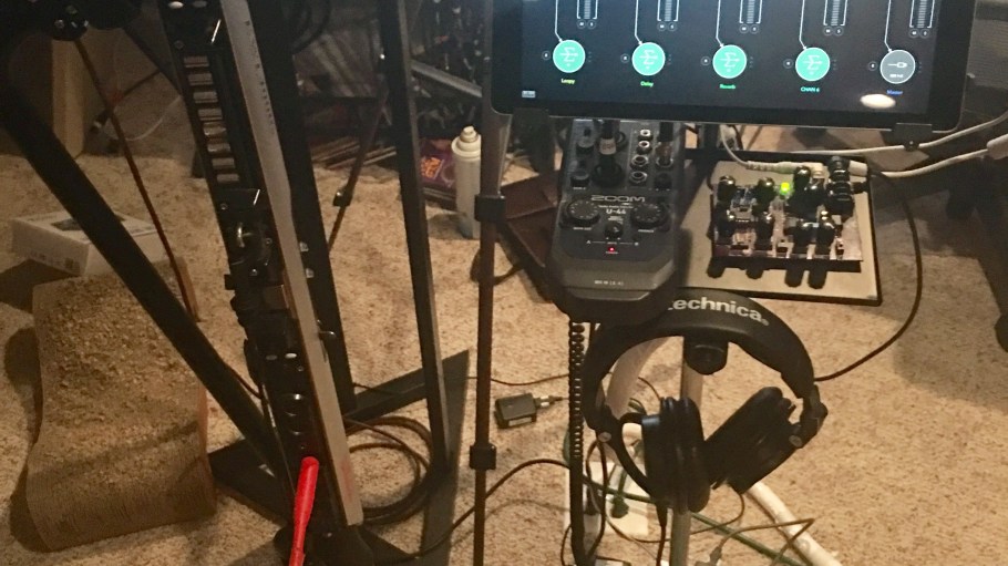 I’m super happy with the dRachEmUsiK live rig for 2017! The new iPad Pro is powerful enough to be able to handle hardware and virtual instruments and processing in real time without a laptop or external mixers. The entire rig can be carried on to an airplane and takes under 15 minutes to set up and break down. Amazing. Cables, DI are stored in the side pocket of the EWI case. All I need from the venue is a single mic stand.