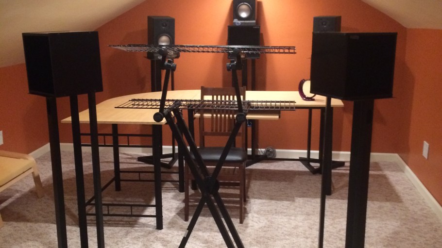 Started moving gear into the new studio tonight! There is still some minor finishing work to be done but I’m able to finalize equipment placement and begin acoustic treatment. The plan is to be back up and running in two weeks. Just in time to start a couple of cool gigs I can’t talk about yet… doh! Gotta say I’m jonesin’ to get back to work and reclaim the rest of the house – which is currently in utter chaos.